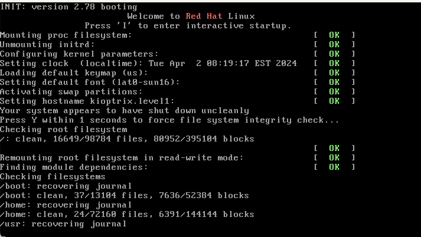 Unfortunately, if we forget this step, the VM will remain stuck in the default shell with no indication of how to proceed! As a final step, we need to select the output.qcow2